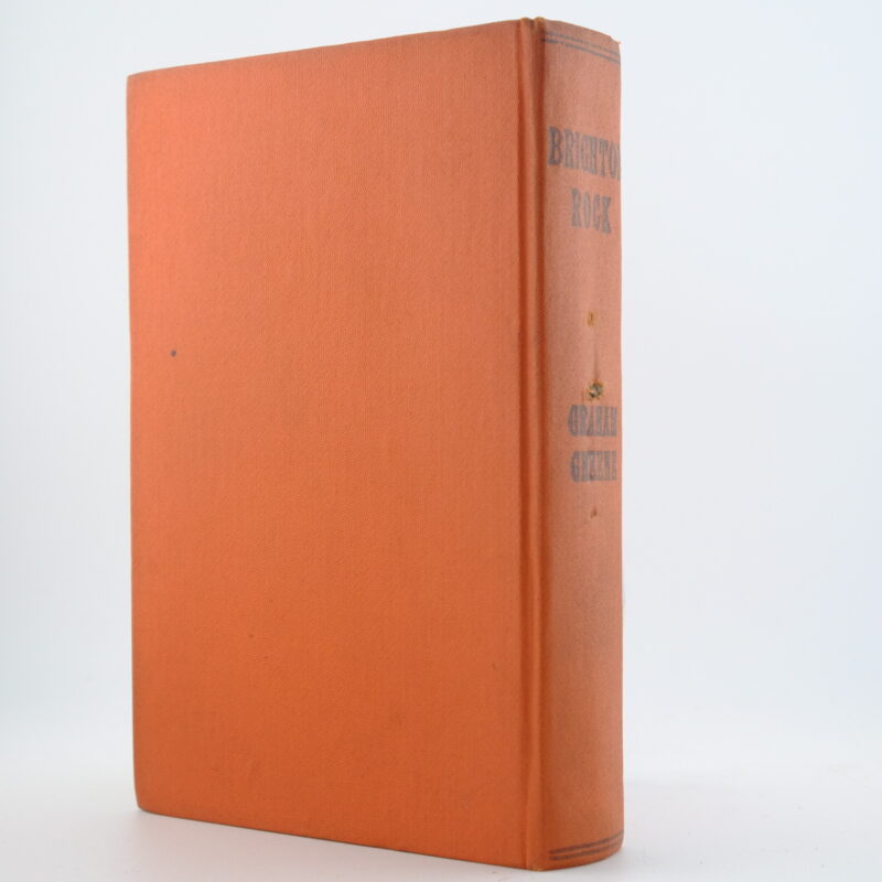 A first UK edition of Brighton Rock with library binding in very good condition. Original orange boards with black lettering and stamp on the spine and front cover. Two tiny holes on the spine. The contents are toned and clean. 8vo 361pp