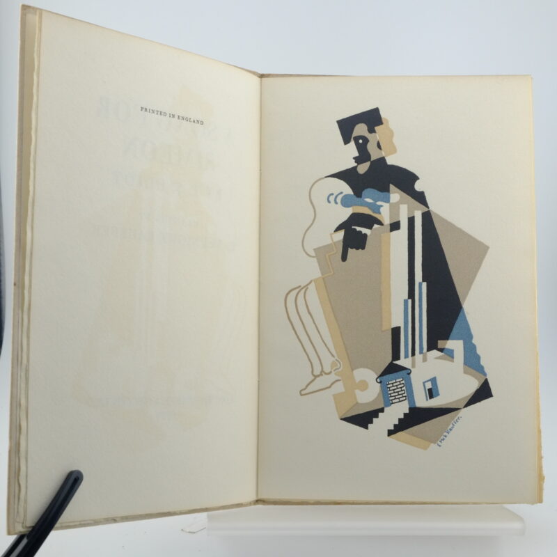 A limited edition of A Song for Simeon by T. S. Eliot. The book is included in the Ariel series of pamphlets that contained illustrated poems by several authors published by Faber and Gwyer and later by Faber and Faber. This was the sixteenth poem for the series and is illustrated by the Avante garde artist, Edward McKnight Kauffer. In very good condition with original grey, paper boards. Some marks on the book cover. Bookplate of Irma L. Harris on the front pastedown. Clean contents and illustrations. 8vo 234/500 copies made on English hand made paper.